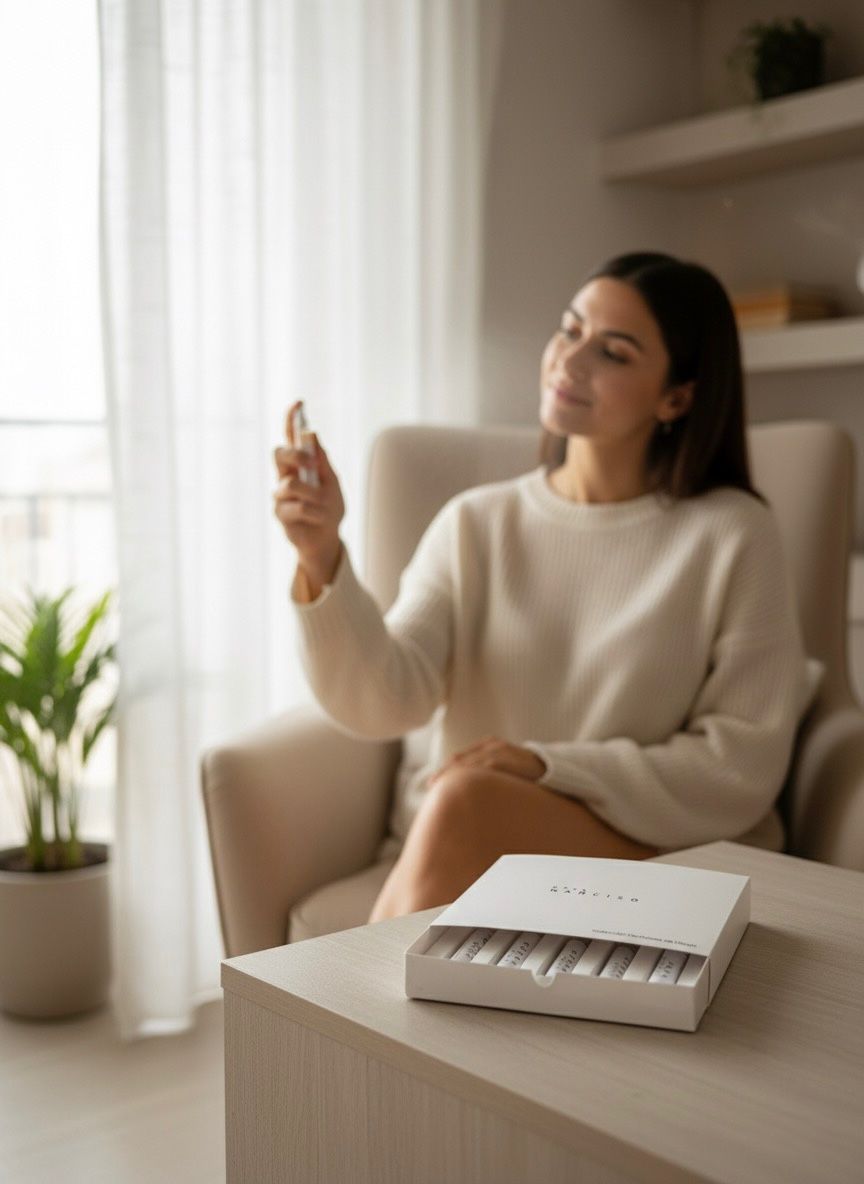 La Colección de Perfumes de Hogar reúne nuestras 5 fragancias favoritas en un set de mini sprays de 10 ml, diseñados para que explores, sientas y elijas el aroma que mejor acompaña tu espacio. Cada perfume está elaborado artesanalmente en México con ingredientes de la más alta calidad, pensado para transformar cualquier habitación en una experiencia sensorial cálida y sofisticada.
